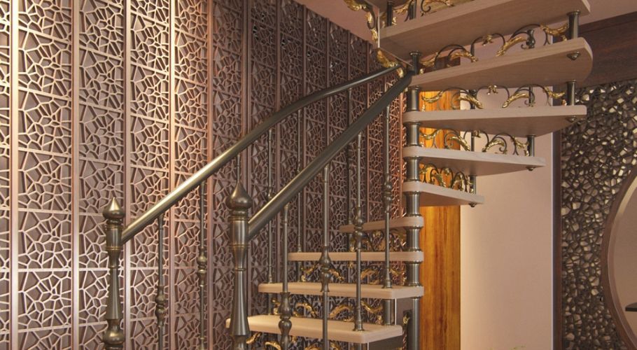 Подобные лестницы очень выигрышно смотрятся в помещениях, оформленных в восточном стиле, роскошь которого многократно увеличивается, вознесенная такой спиралью к нескрываемому шику. Также стоит отметить, что особая таинственность, окруженная своеобразным готическим дизайном, производит неповторимое впечатление – словно погружение в средние века.